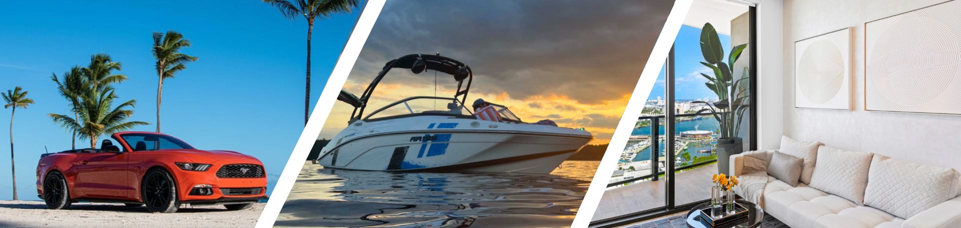 Enjoy Miami with the best combo: Yamaha Boat, Convertible Mustang and The Elser Apartment with the best view of the bay. The perfect solution to stay and enjoy Miami from the land, water and sky. A unforgettable experience for you and your family.